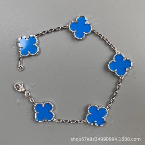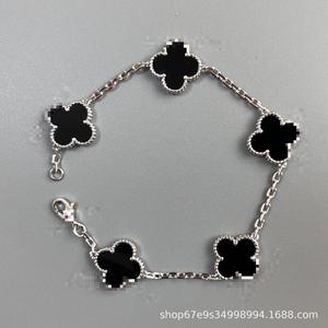 跨境爆款梵家四叶草五花手链带标带logo女18k金双面贝母时尚百搭