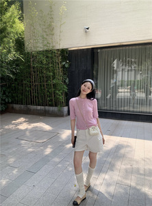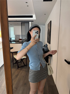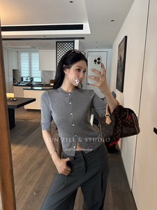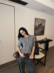 秋季新款女装韩系温柔小香风修身显瘦百搭圆领中袖开衫针织衫上衣