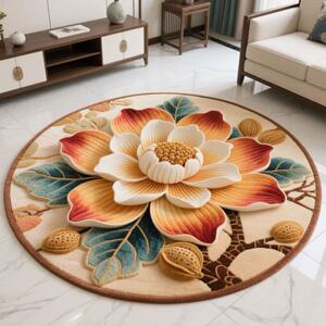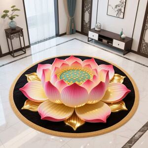地毯莲花跪拜跪垫圆形立体满铺水晶中式荷花卧室地垫古典客厅家用