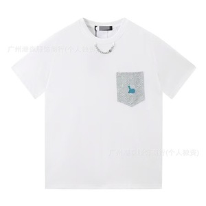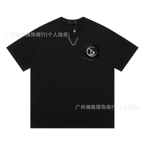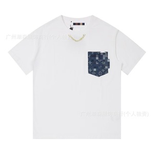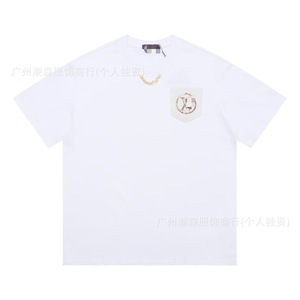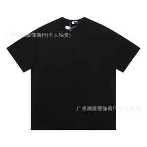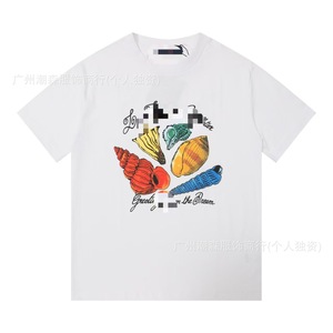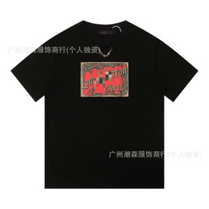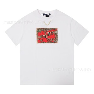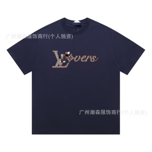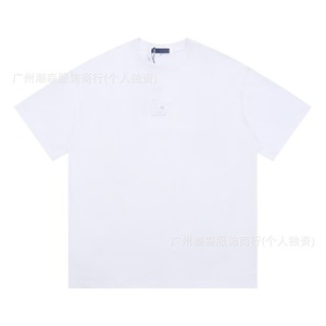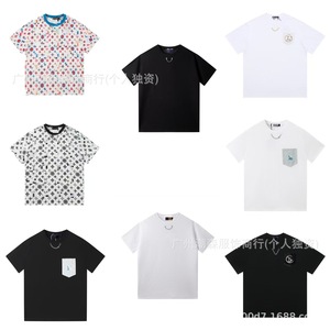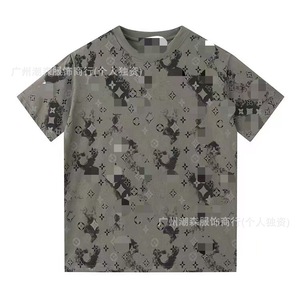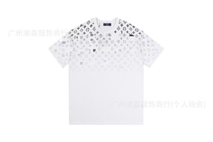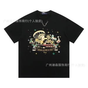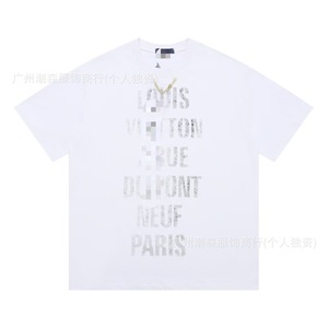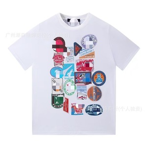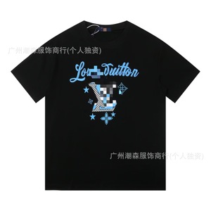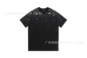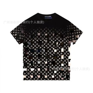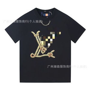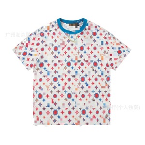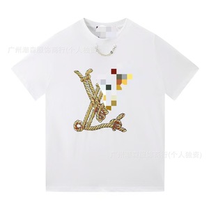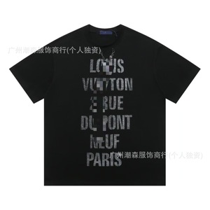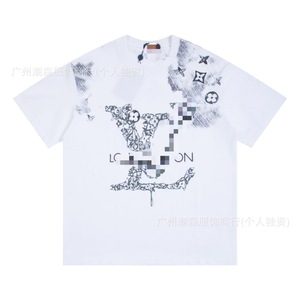 跨境奢潮高品质满印花L字母短袖潮牌外贸欧货驴家圆领男女宽松T恤