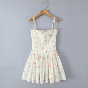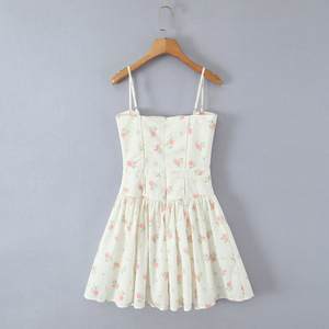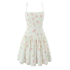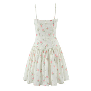 676025夏季新款法式复古少女甜美休闲印花拼接修身吊带裙连衣裙