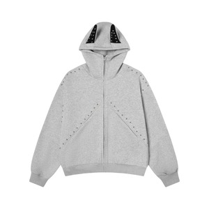 didiyaa 秋美式覆古小众铆钉拼接杜宾犬连帽卫衣百搭情侣外套上衣