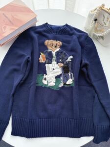 RL/可扫码25新款小熊重工刺绣2025年秋冬款纯棉卡通圆领针织毛衣
