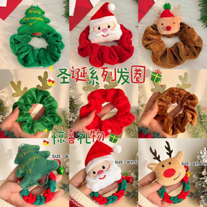 圣诞节小鹿毛绒大肠发圈女高弹力耐用发绳可爱公仔橡皮筋发饰头绳