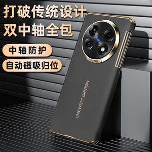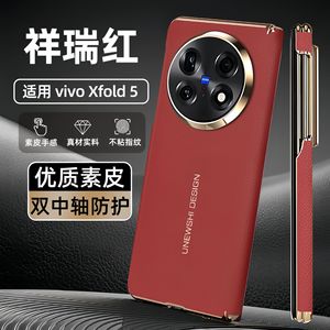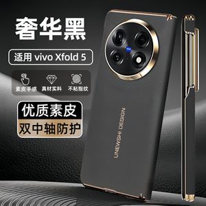 适用vivoxfold5手机壳双中轴磁吸保护XFold5素皮电镀镜头全包防摔