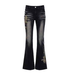 梦回千禧复古做旧牛仔裤辣妹低腰微喇裤美式花卉刺绣新款百搭长裤