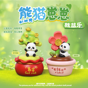 网红爆款熊猫崽崽转盆乐潮玩盲盒手办家居桌面小摆件生日礼物批发