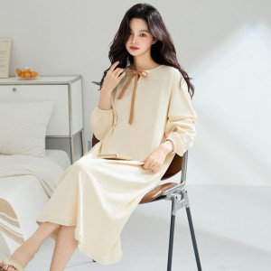 睡裙女春秋纯棉2025新款长袖长款连衣裙淑女风大码宽松孕妇家居服