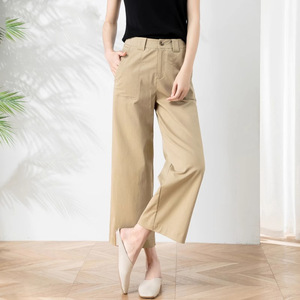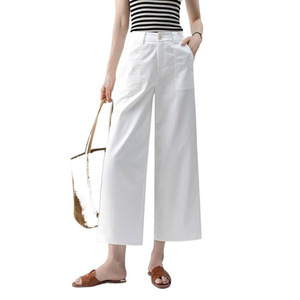 天丝棉白色九分阔腿裤女夏季2025新款薄款直筒裤高腰显瘦休闲裤子