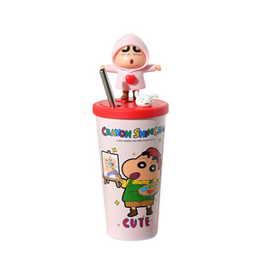【正版蜡笔小新】卡通咖啡杯新款趣玩变脸捏捏乐水杯高颜值保温杯