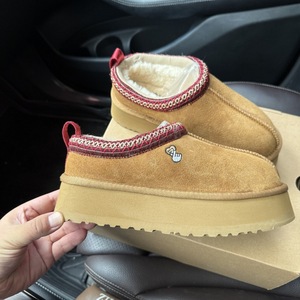 民族风雪地靴女新款新色厚底编织拖鞋牛皮羊毛保暖发防滑增高大码