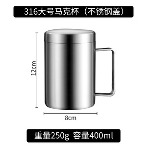 316不锈钢马克杯双层隔热防烫家用办公咖啡杯茶水杯成人带盖口杯