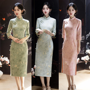 麂皮绒单层印花中长款中袖旗袍2025秋冬新款复古国风年轻女士旗袍