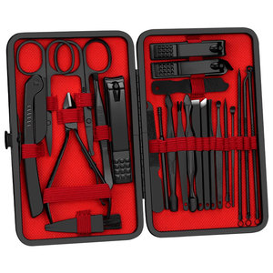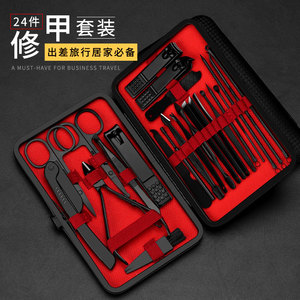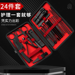 现货黑色指甲刀套装24件套不锈钢指甲剪死皮钳修脚刀美容套印logo