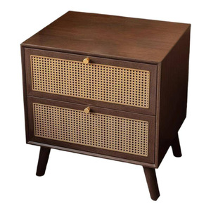胡桃色藤编双抽床头柜