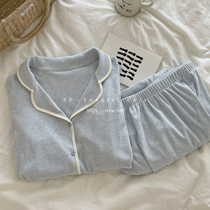 松霏秋冬新款撞色翻领睡衣慵懒风可外穿套装 螺纹磨毛长袖家居服