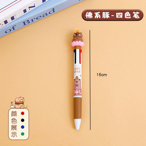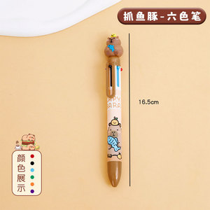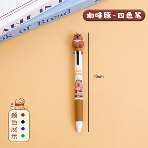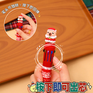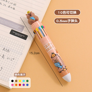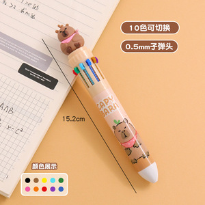 圣诞卡皮巴拉十色圆珠笔卡通多色合一按动中性笔学生彩笔画画油笔