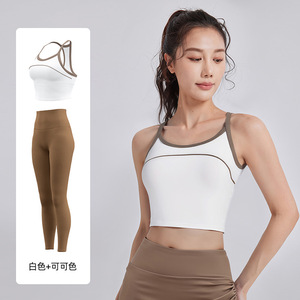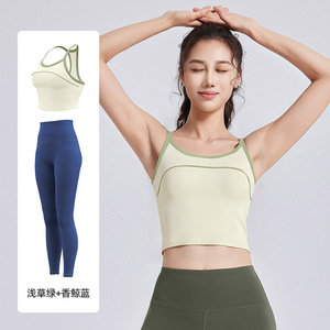 聚衣堂撞色线感运动套装一体杯美背防震运动瑜伽套装女