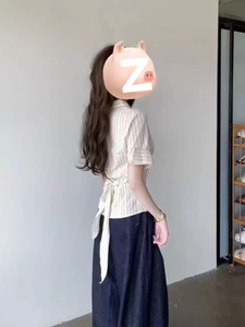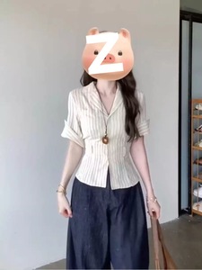 纯欲风套装女2025夏季新款韩系洋气绑带收腰条纹衬衫阔腿裤两件套