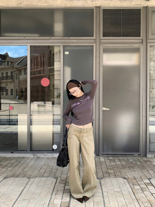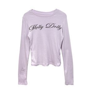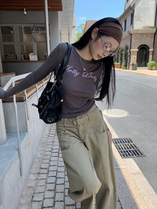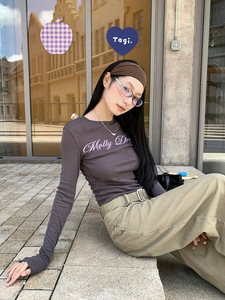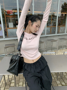 [9hour]辣妹风修身显瘦长袖t恤女 2025秋季正肩百搭上衣女c250613