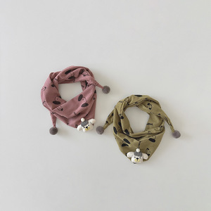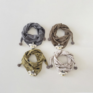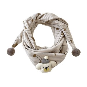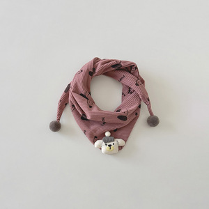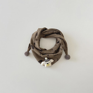 秋南 儿童围巾秋冬新款灯芯绒卡通小狗三角巾男女童宝宝可爱头巾