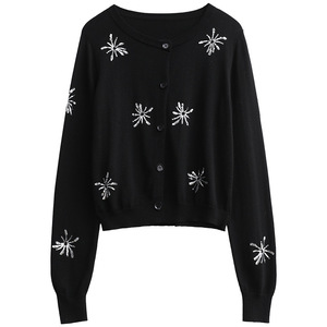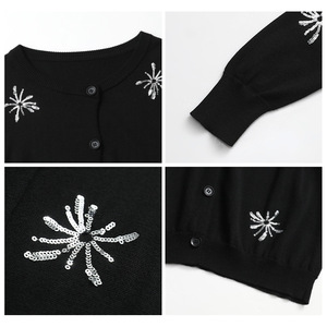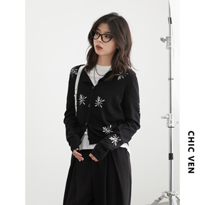 CHICVEN「非正式学院风韩版圆领撞色亮片刺绣针织开衫毛衣小衫秋