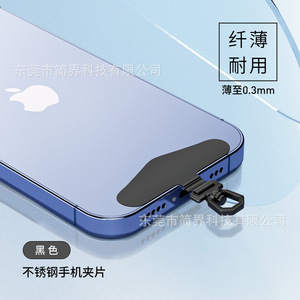 手机垫片挂绳不锈钢手机夹片防丢金属手机绳超薄可旋转手机壳挂片