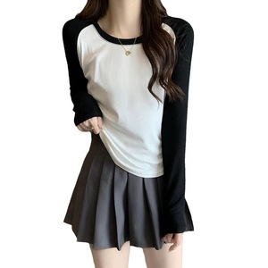 圆领棉撞色t恤女士2025新款秋冬时尚洋气掐腰设计感修身显瘦上衣