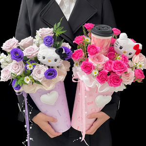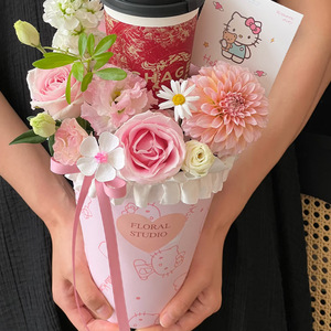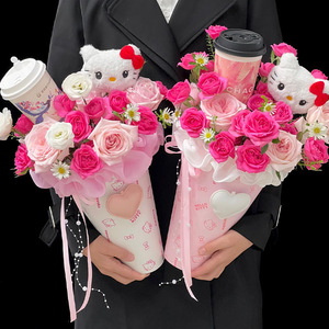 新款秋天的第一杯奶茶鲜花束DIY包装纸节日礼物花店资材