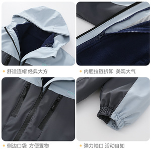 男童冲锋衣三合一可拆卸宽松加绒厚儿童装2025新款宝宝时髦外套潮