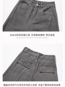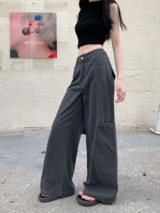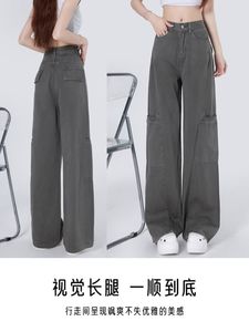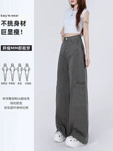 灰色复古做旧牛仔裤女2025秋季新款宽松显瘦阔腿美式休闲拖地长裤