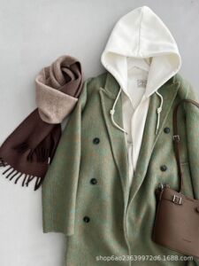【昨日晴空】植物系新款深绿色时尚气质显白设计款小个子大衣HL11
