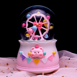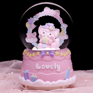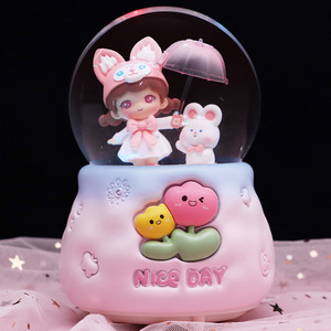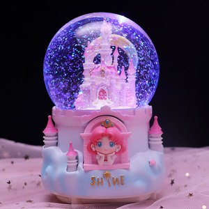 梦幻冰雪奇缘爱莎公主水晶球音乐盒发光飘雪白雪公主摆件女生礼物