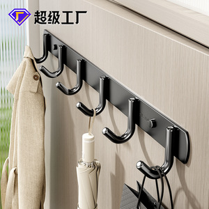 挂钩粘钩一排免打孔太空铝卫生间挂衣架浴室厨房毛巾衣帽厂家批发