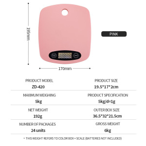 跨境热销马卡龙配色厨房秤5kg家庭辅食称重LCD防滑营养秤带挂孔