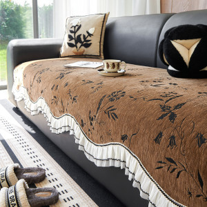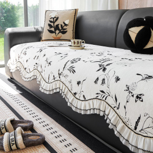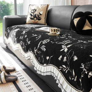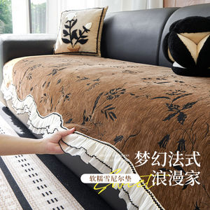 法式轻奢沙发垫四季通用异形裙边雪尼尔固定防滑一片式皮沙发坐垫