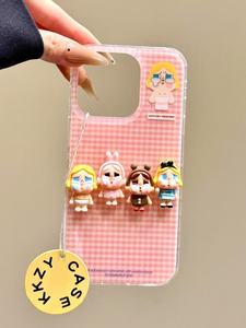 粉格纹金发哭娃+皇冠哭娃与金黄发领结哭娃背夹