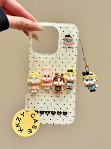 米白底满屏波点黑发箍哭娃+蓝裙子爱心哭娃与粉发哭娃背夹