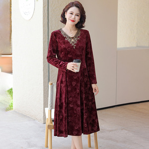 改良旗袍连衣裙女春秋新款妈妈装仿金丝绒连衣裙修身显瘦旗袍裙女