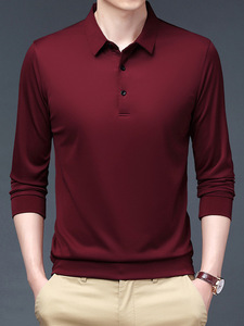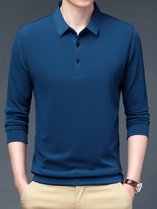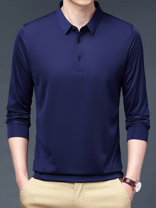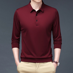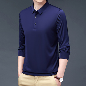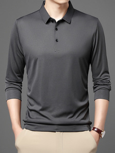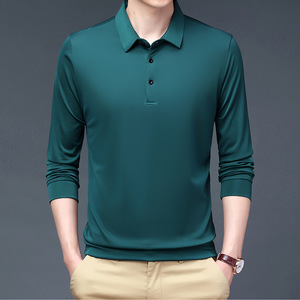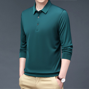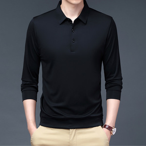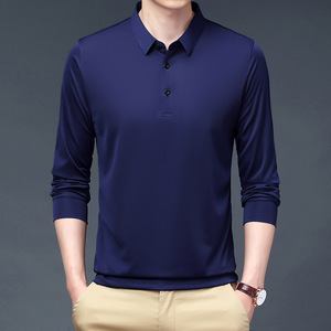 跨境男士POLO衫新款长袖春秋季纯色T恤高级感翻领商务休闲上衣男