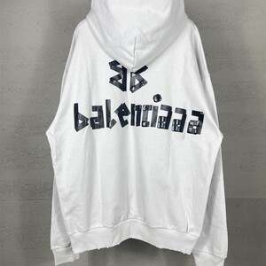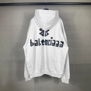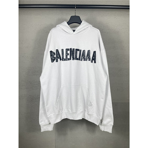 跨境 高品质版本B家25SS经典款胶带拉浆印花水洗磨烂宽松连帽卫衣
