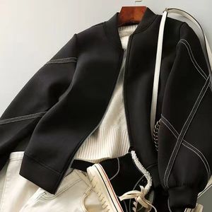 港风棒球服夹克黑色外套女大码显瘦女装2025秋季新款开衫拉链外套