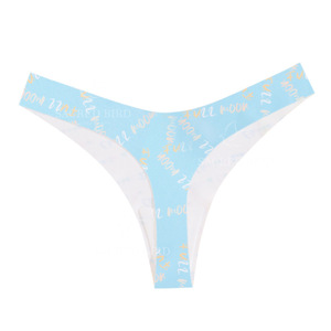 情侣主题个性印花无痕一片式薄款女士T型内裤 低腰隐形瑜伽丁字裤