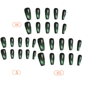 宝石绿玻璃珠猫眼高级质感气质少女风御姐风显白美甲30-T穿戴甲