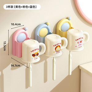 免打孔壁挂牙刷杯架浴室多巴胺卫生间塑料吸盘牙刷杯收纳置物架