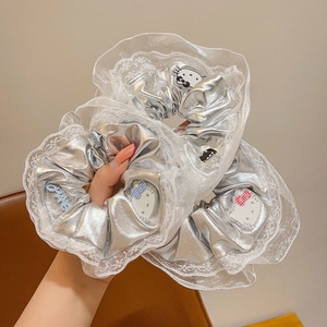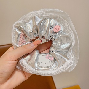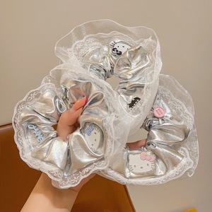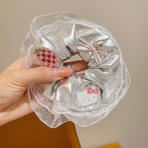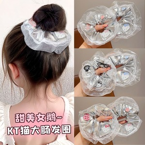 宝宝女童Kitty猫银色蕾丝少女芭蕾风大肠发圈发绳高弹发绳蝴蝶结