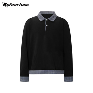 格子假两件拼接翻领Polo衫男女潮牌宽松重磅休闲miu系长袖T恤boxy