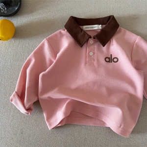 2025儿童翻领polo衫撞色领男童长袖t恤套头衫1-6岁宝宝春秋上衣潮