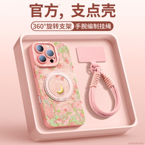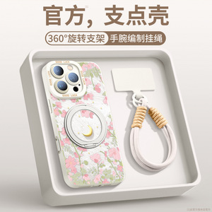 AU422花与月【砂粉色】硅胶软壳★手提挂绳★磁吸支架