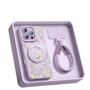 AU422花与月【草紫色】硅胶软壳★手提挂绳★磁吸支架